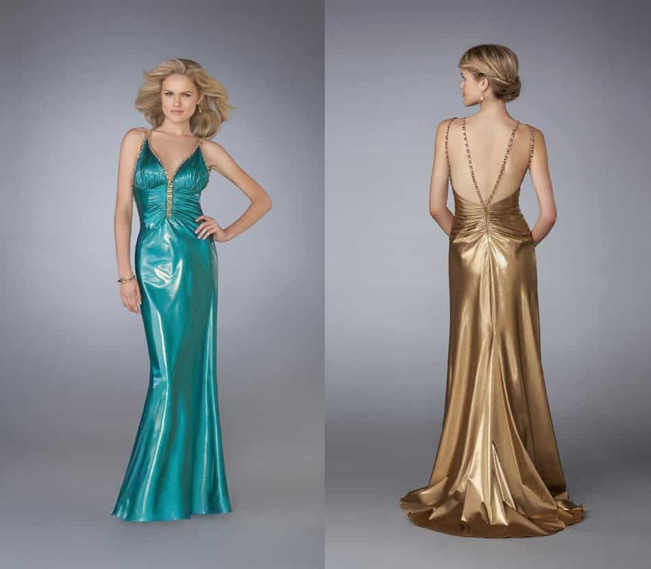 وتظهر تلك التصميمات الخاصة بالفساتين المصنوعة من الحرير بعدة طبقات لمزيد من الرقة والجاذبية وتتميز الرقبة بشكل حرف V لتظهر قلاجمال رقبتك وتبرز صدرك ، ويمكن أن يتم ارتداء بعض الموديلات الأخرى التي تصمم بلا اكمام مع حزام خصر عريض وفي تلك الحالة يتم ارتداء قلائد واقراط كبيرة الحجم خاصة إذا كان الفستان يخلو من التفاصيل فيمكنك إضفاء بعض اللمسات من خلال الاكسسوارات حتى تكتمل تلك الإطلالة الخاصة بالسهرات والحفلات.